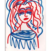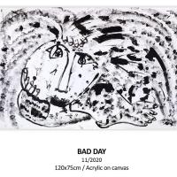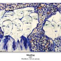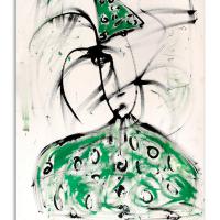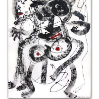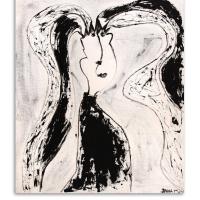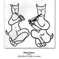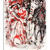 From 2000 onwards, I decided to solely use acrylic on canvas as I adore the texture and the instantaneity of the work I can produce with it. Because all I do is to create instant and soulful work. Everything is in the now. My paintings are not pre-thought, prepared, pre-organised. It is a spontaneous stroke of paint that produces these human beings and creatures, which only then, do they take their sense and context within the world, and are named.